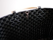 バッグ片面上部にDカンを付け、そちらにチャームを付けています。気分に合わせてお手持ちのバッグチャームと取り替えたり、カラビナ等を付けて便利にご使用いただけます。