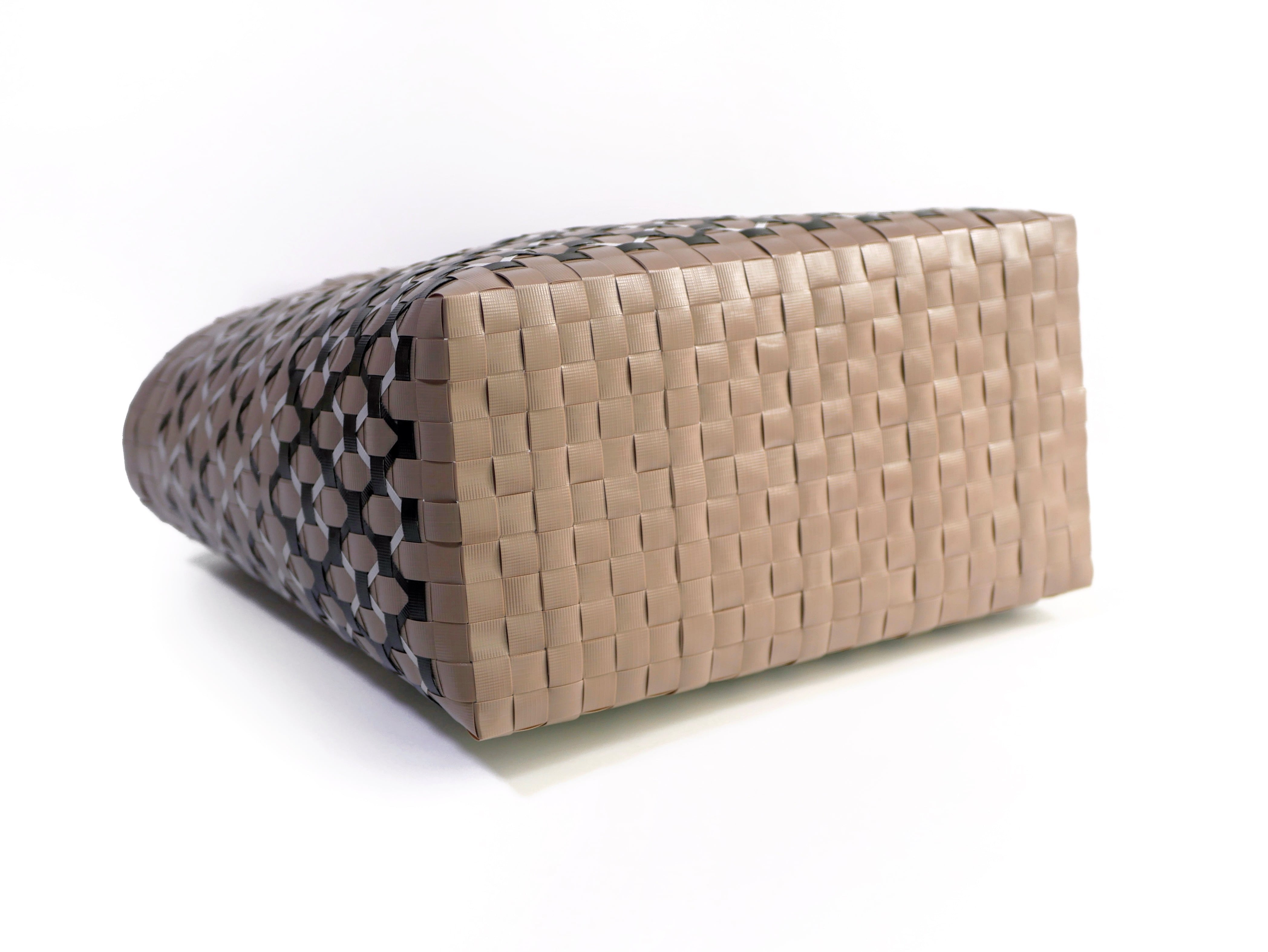 ポリプロピレンのバンドで編んだかごバッグ。水洗いOK。