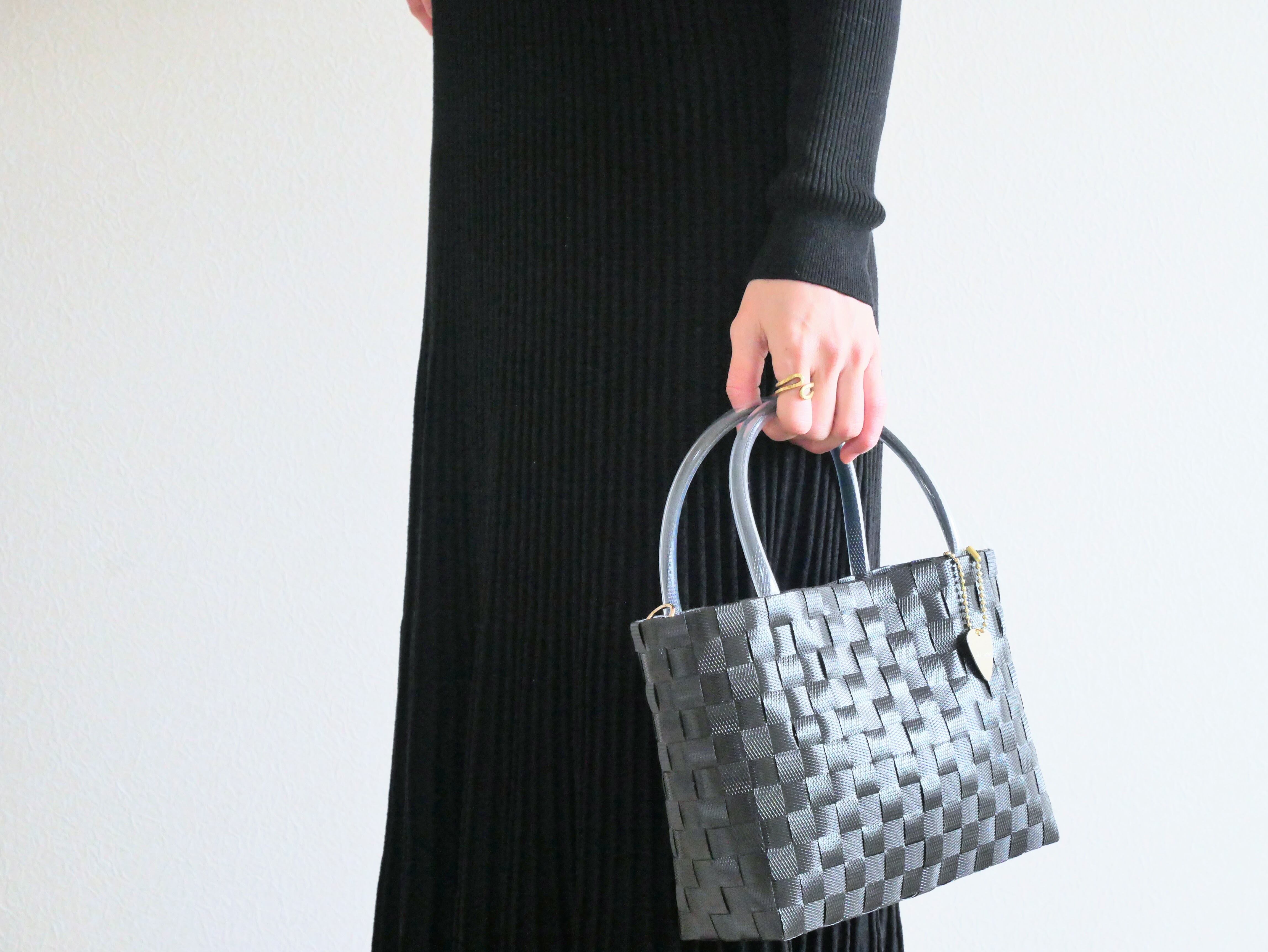きっちりとした編み目で、プラカゴバッグとは思えない質感と品があるとお客様よりお声がけいただいています。オフィスで使うミニバッグとしてもおすすめです。