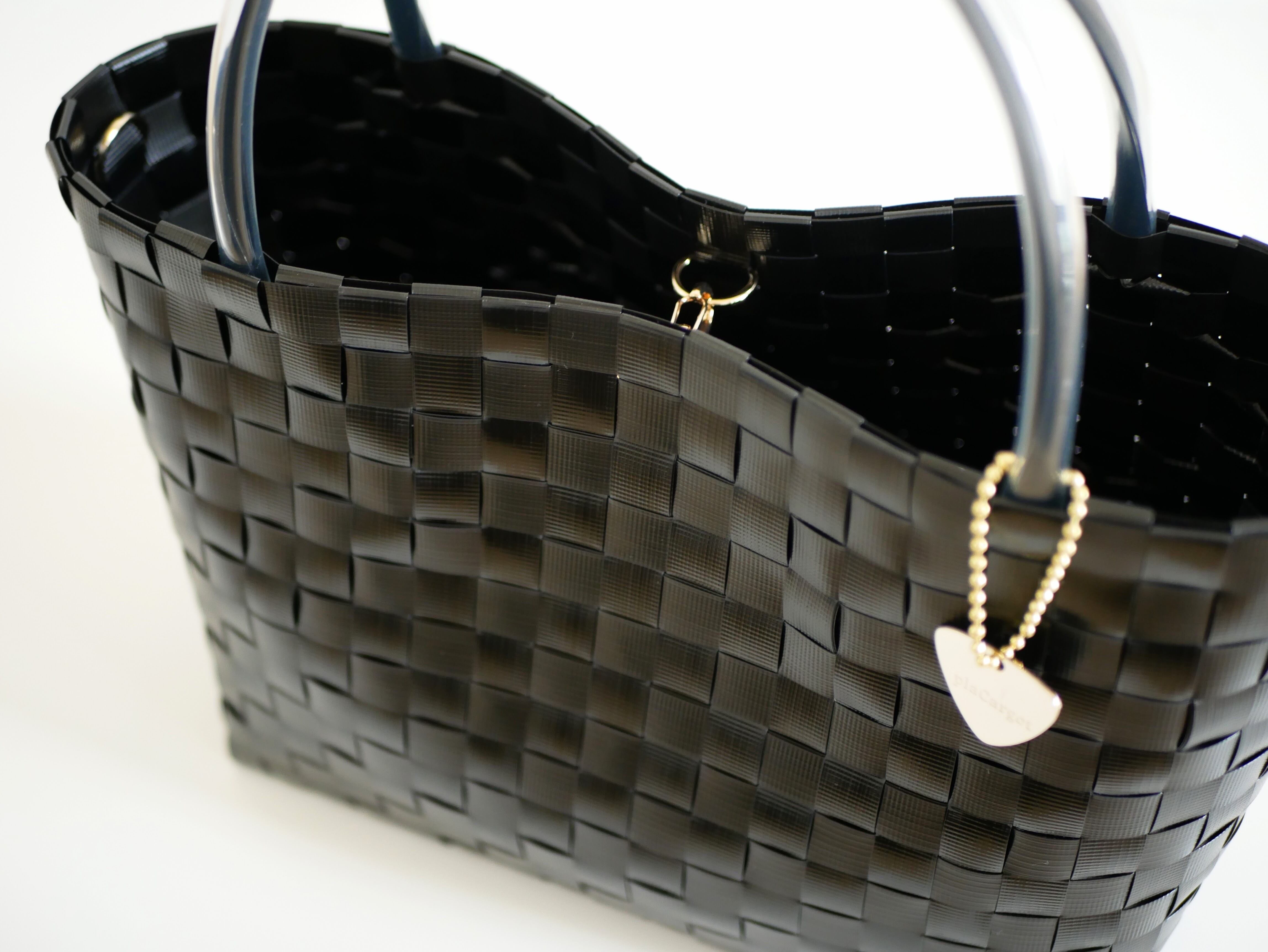 ブラックM 2WAYプラカゴバッグ/洗える/トートバッグ/ミニバッグ/スパバッグ/ジムバッグ/ギフト/ハンドバッグ