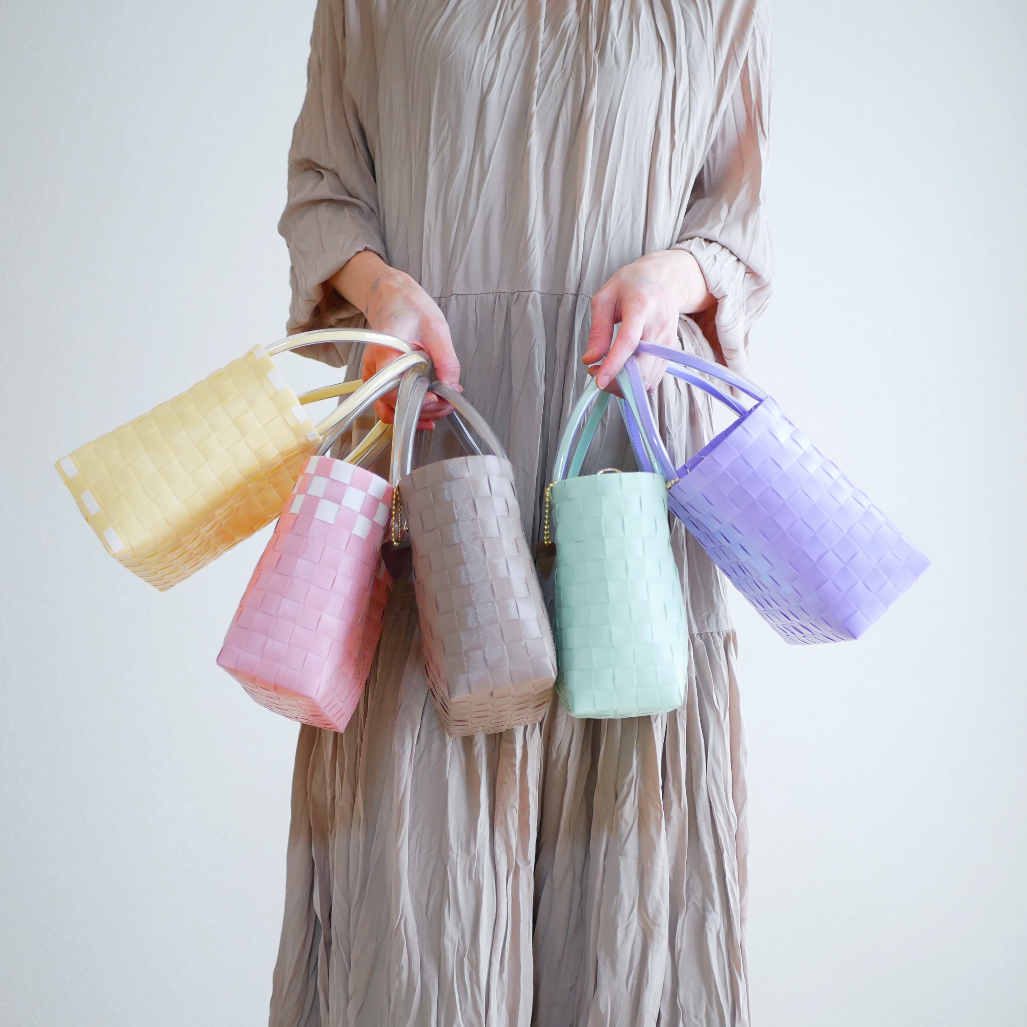 選べる5色 春色2WAYプラカゴバッグS 洗える/トートバッグ/ミニバッグ/スパバッグ/ジムバッグ/ハンドバッグ