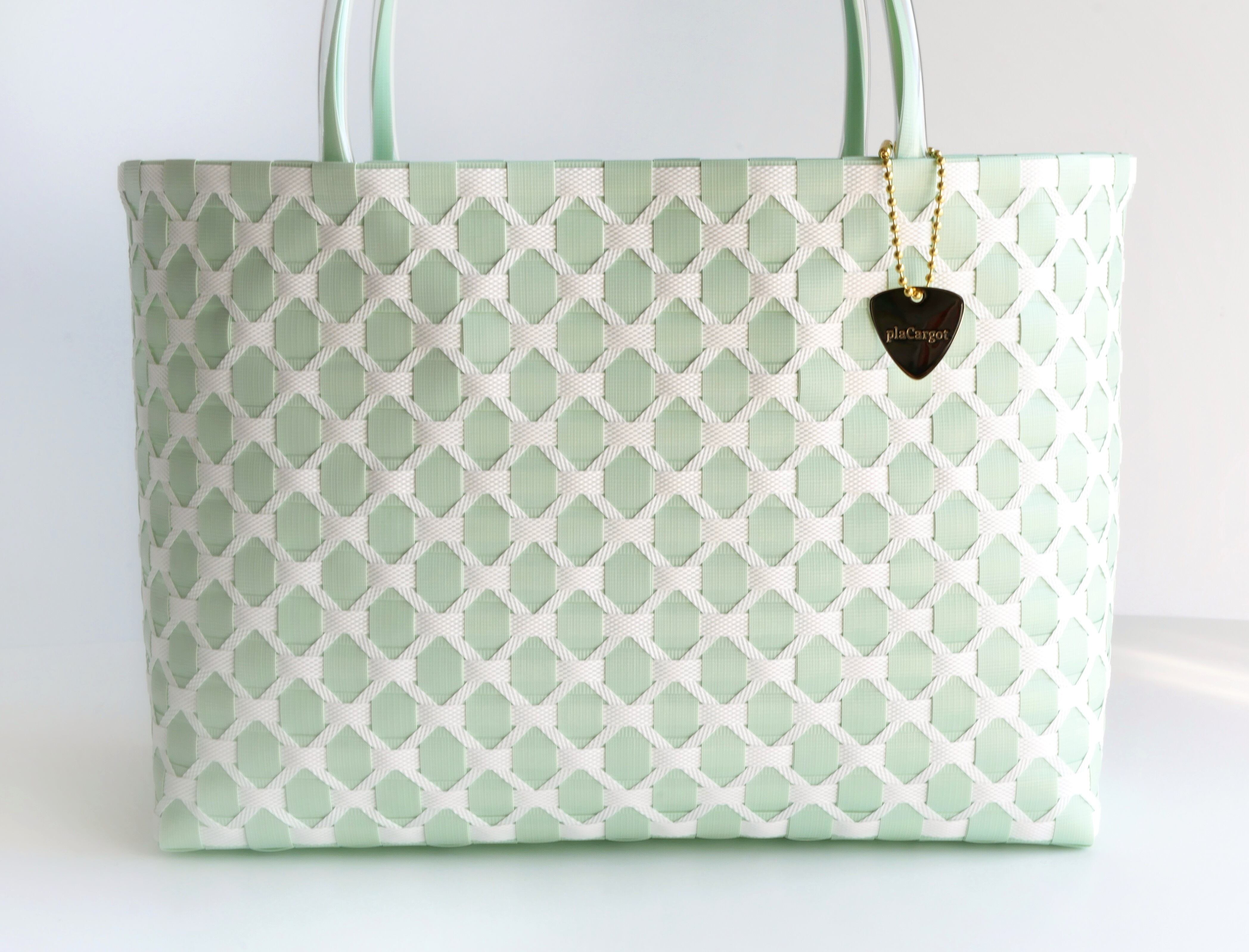 ダイヤ柄ミントグリーンL 2WAYプラカゴバッグ/洗える/トートバッグ/お出掛け/プレゼント