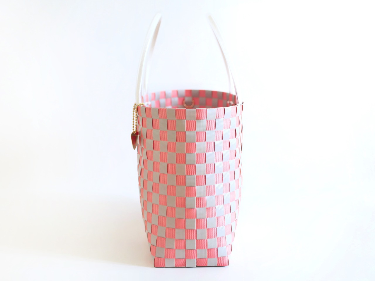 ポリプロピレンのバンドで編んだかごバッグ。水洗いOK。ポリプロピレンのバンドで編んだかごバッグ。水洗いOK。