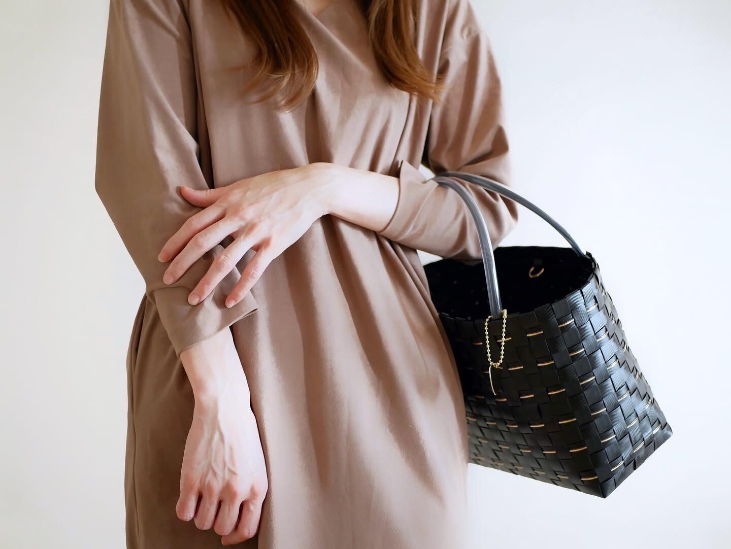 GOLD×ブラック〈Mサイズ〉 2WAYプラカゴバッグ プラカゴ かごバッグ 黒 着物