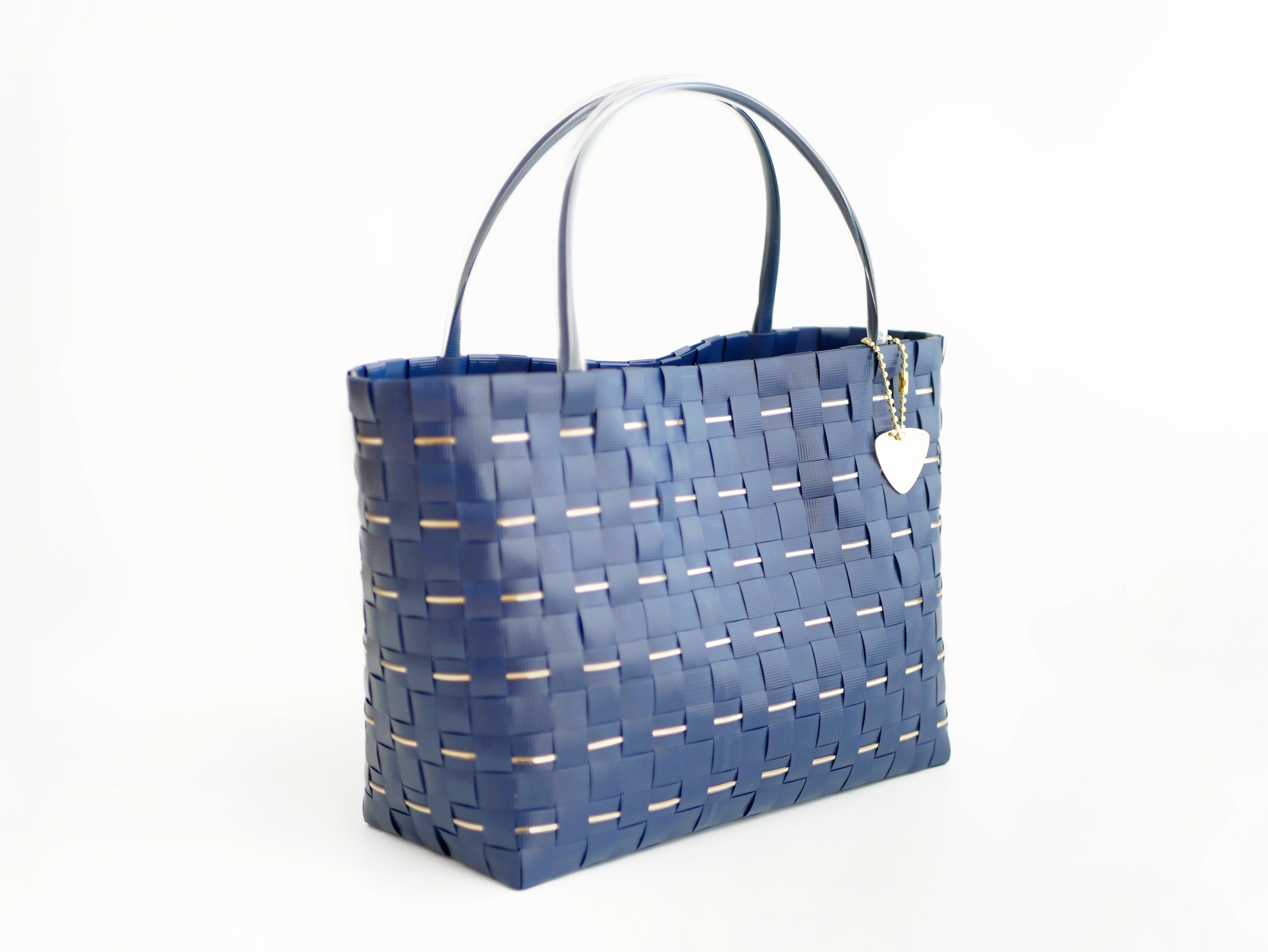 特別なギフトにも GOLDラインが美しいネイビー (M) 2WAYプラカゴバッグ トートバッグ プラカゴ かごバッグ