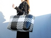 チェック柄ブラック×ホワイトXL 2WAYプラカゴバッグ マルシェバッグ エコバッグ 大容量