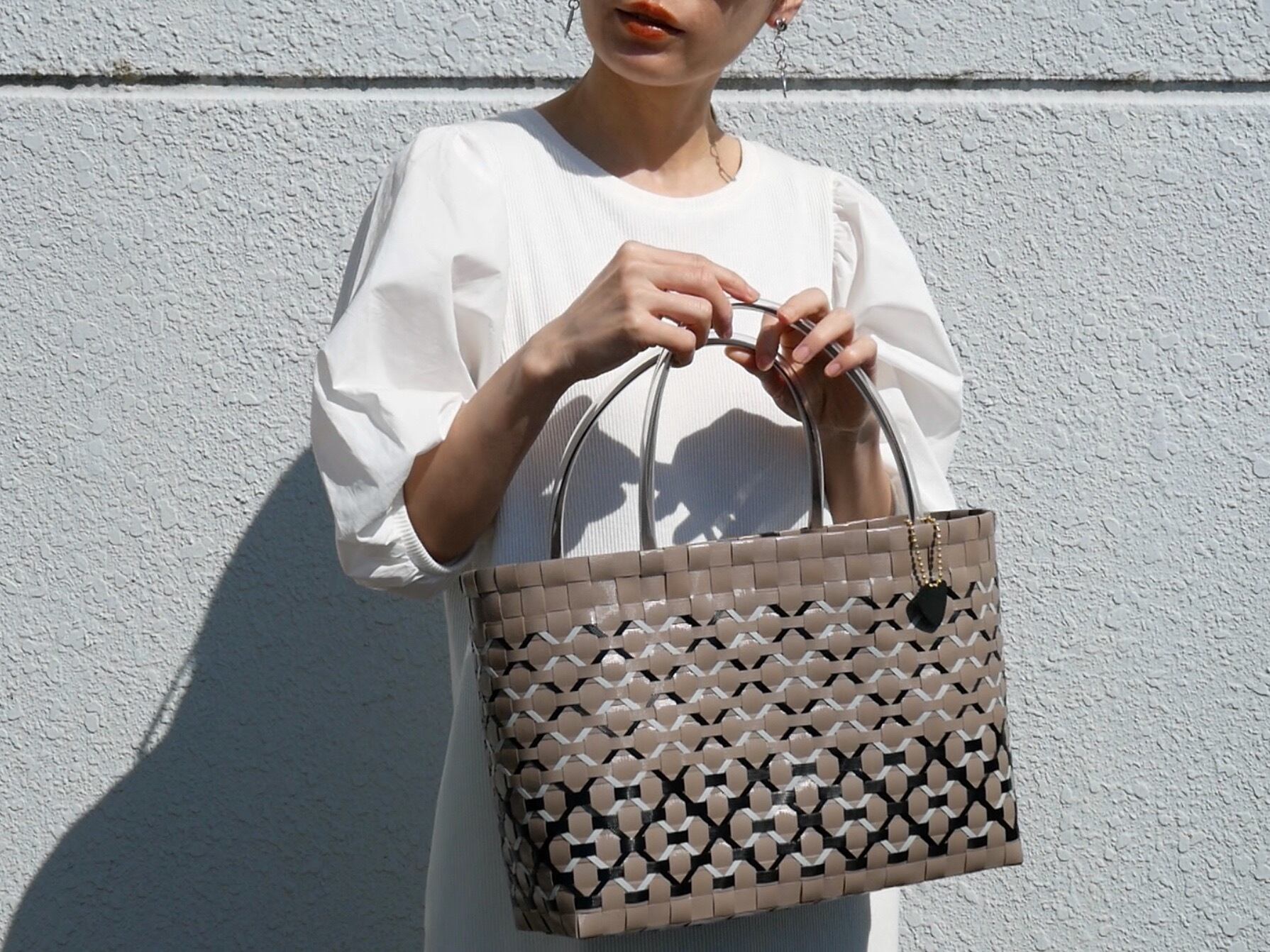 花柄ミックスグレージュ L 2WAYプラカゴバッグ プラカゴ かごバッグ トートバッグ アウトドア
