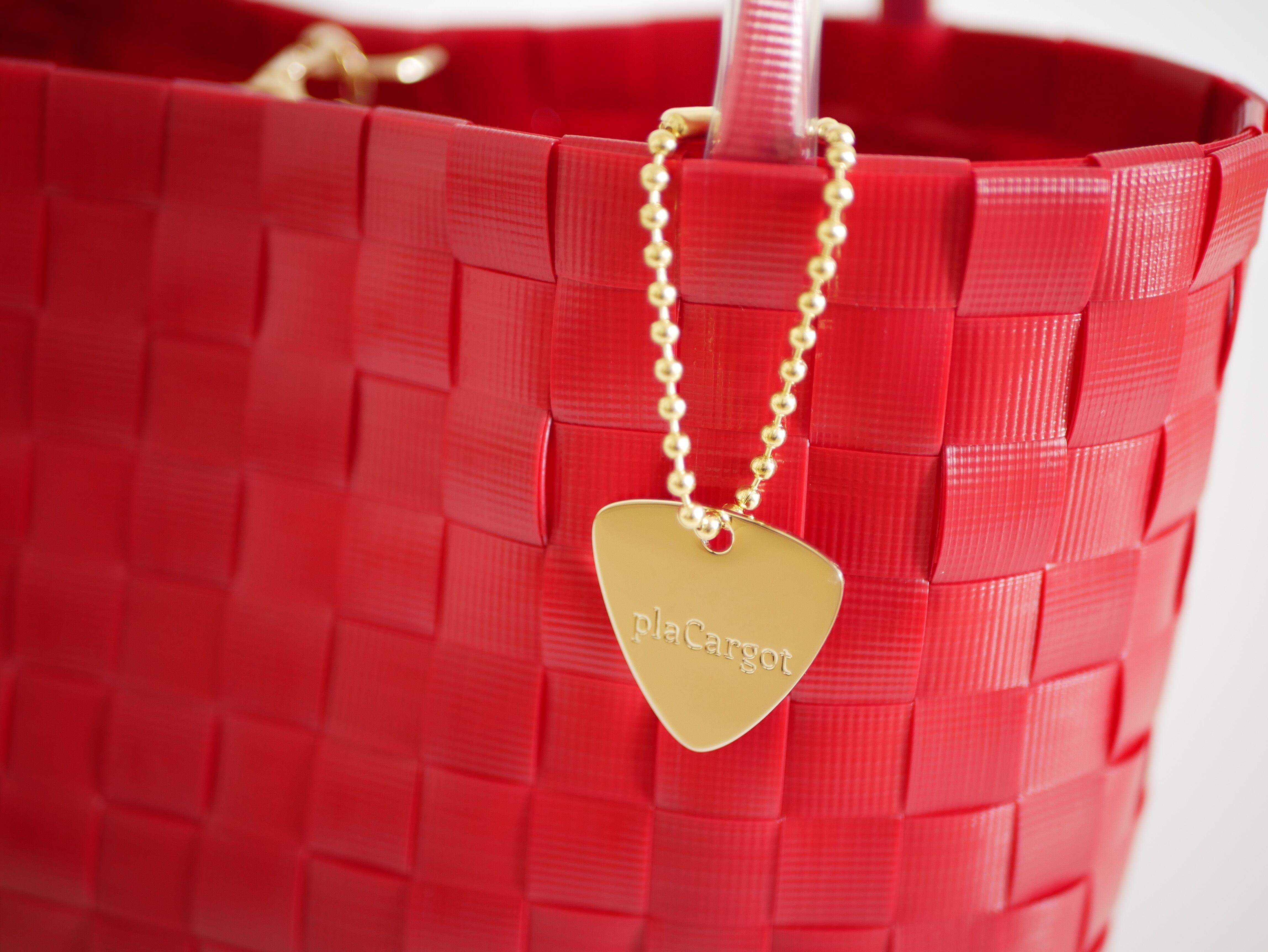 薄ゴールドの金具やチャームがカジュアルさを抑え、大人の女性が上品に持てるプラカゴバッグ。