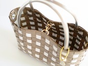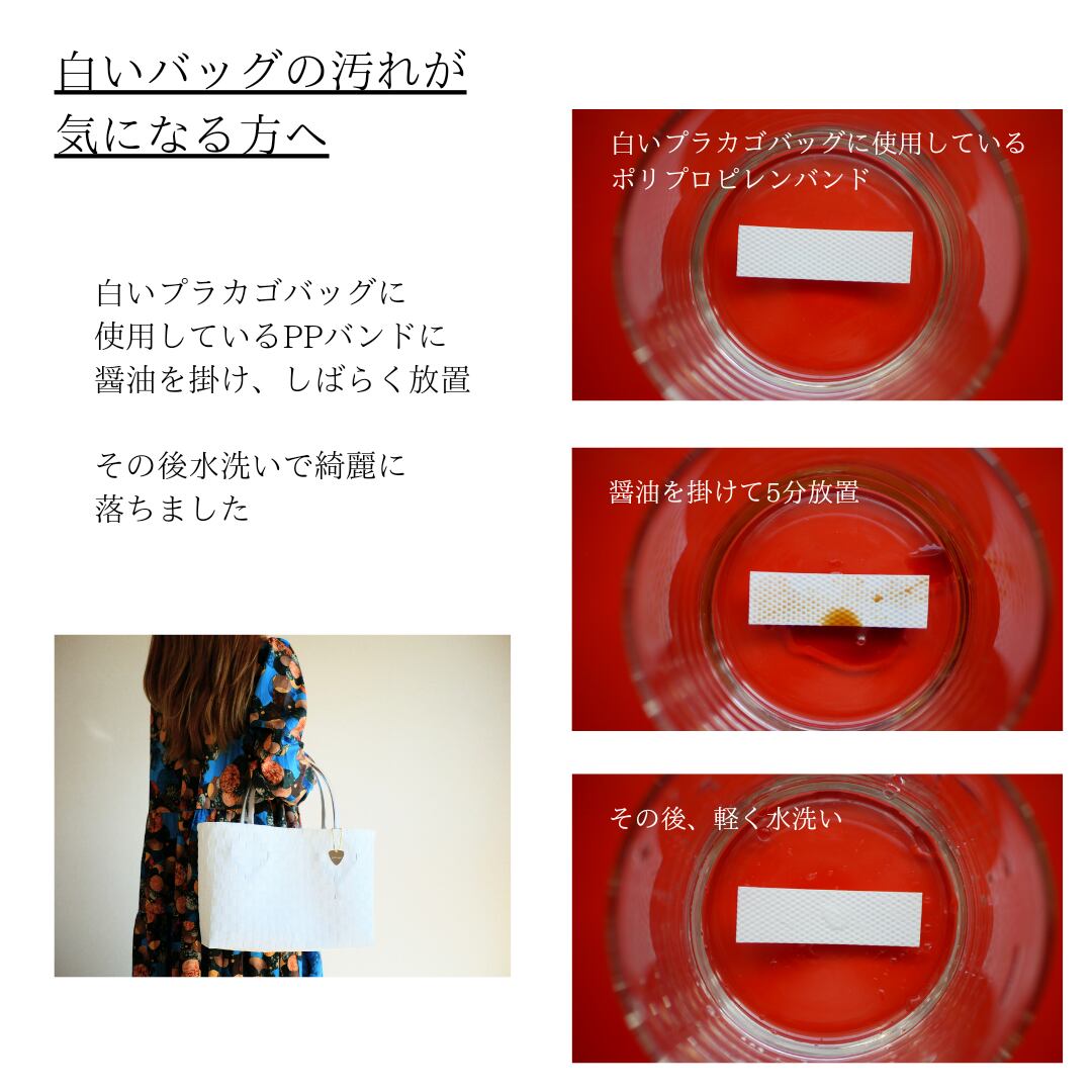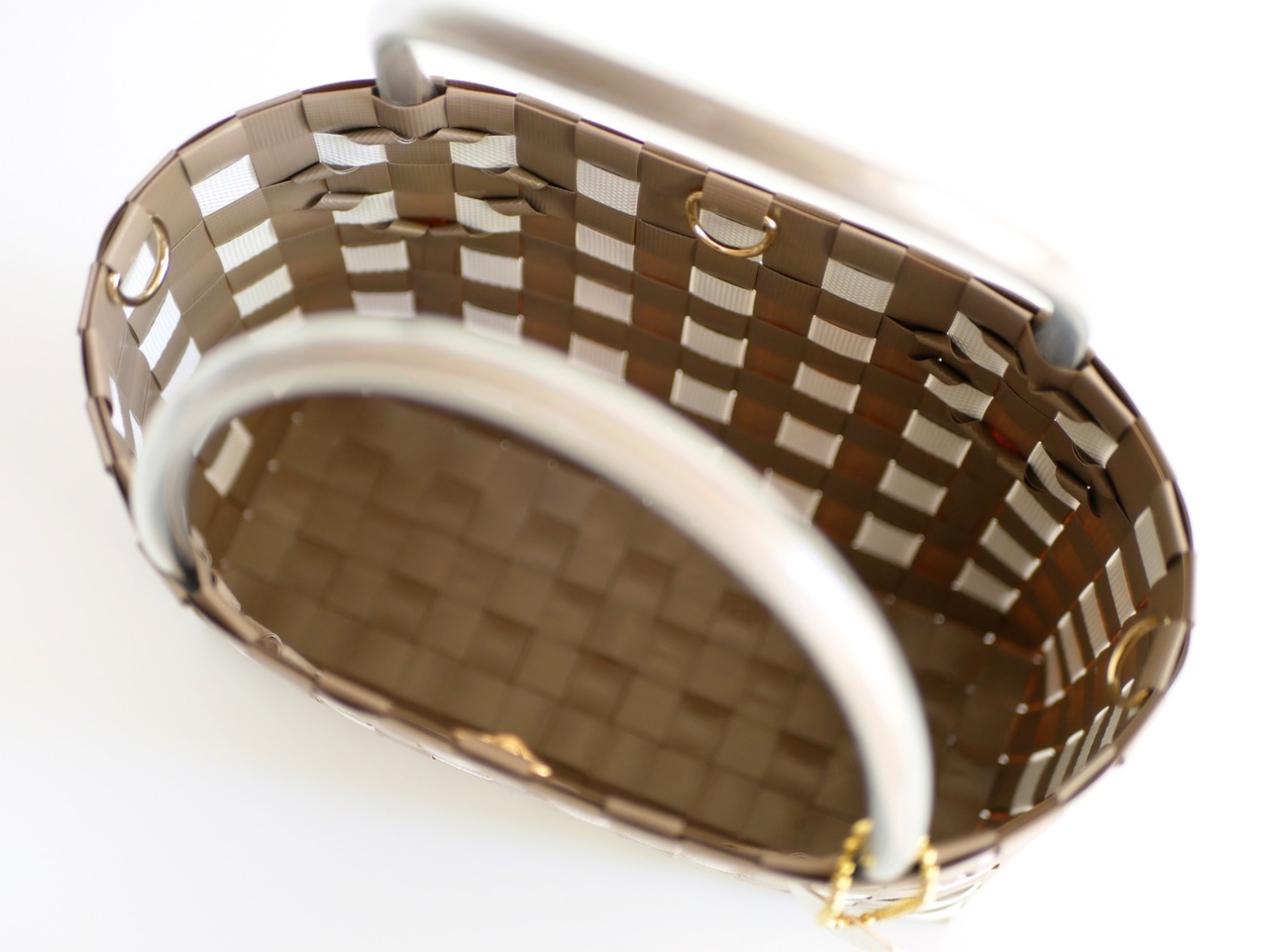 ポリプロピレンのバンドで編んだかごバッグ。水洗いOK。