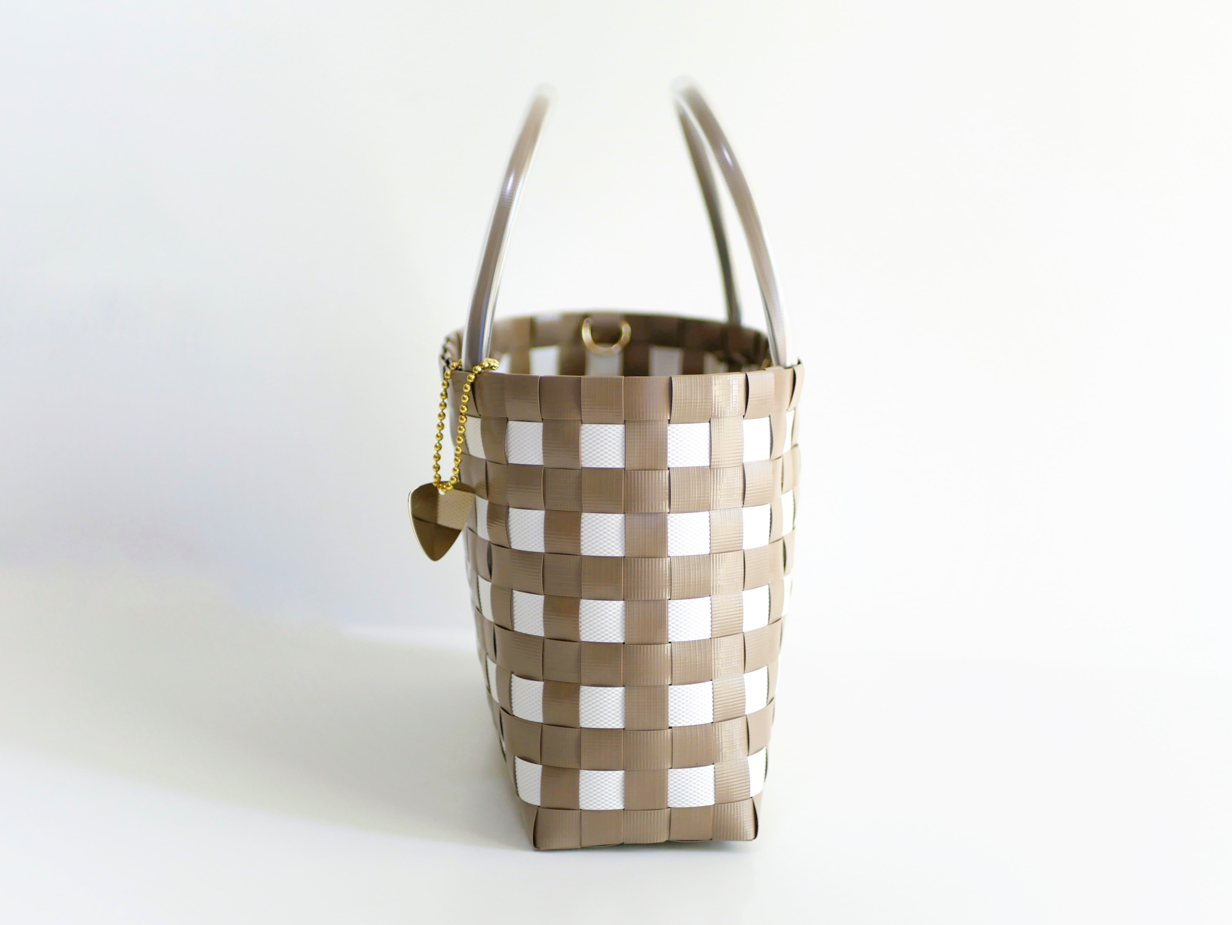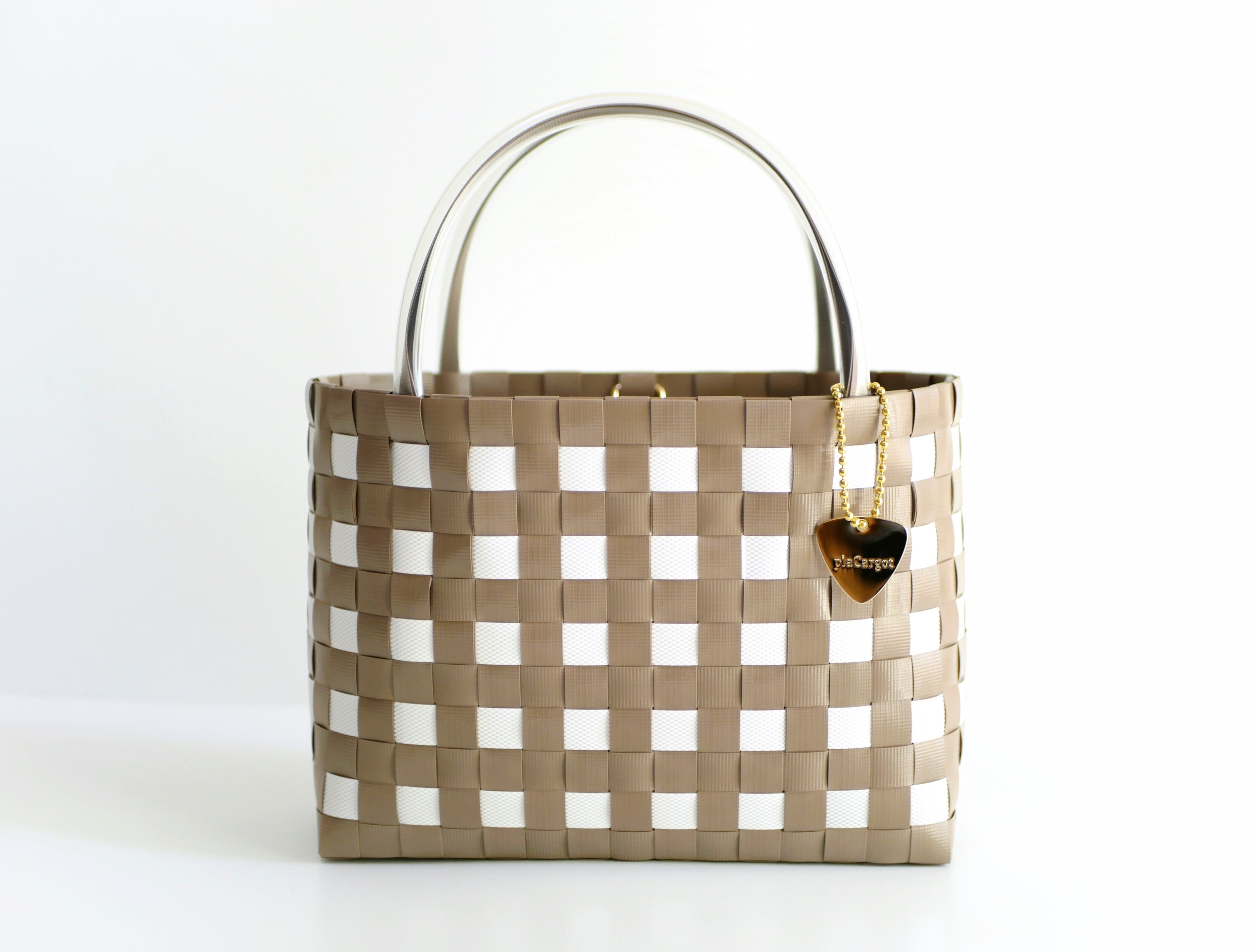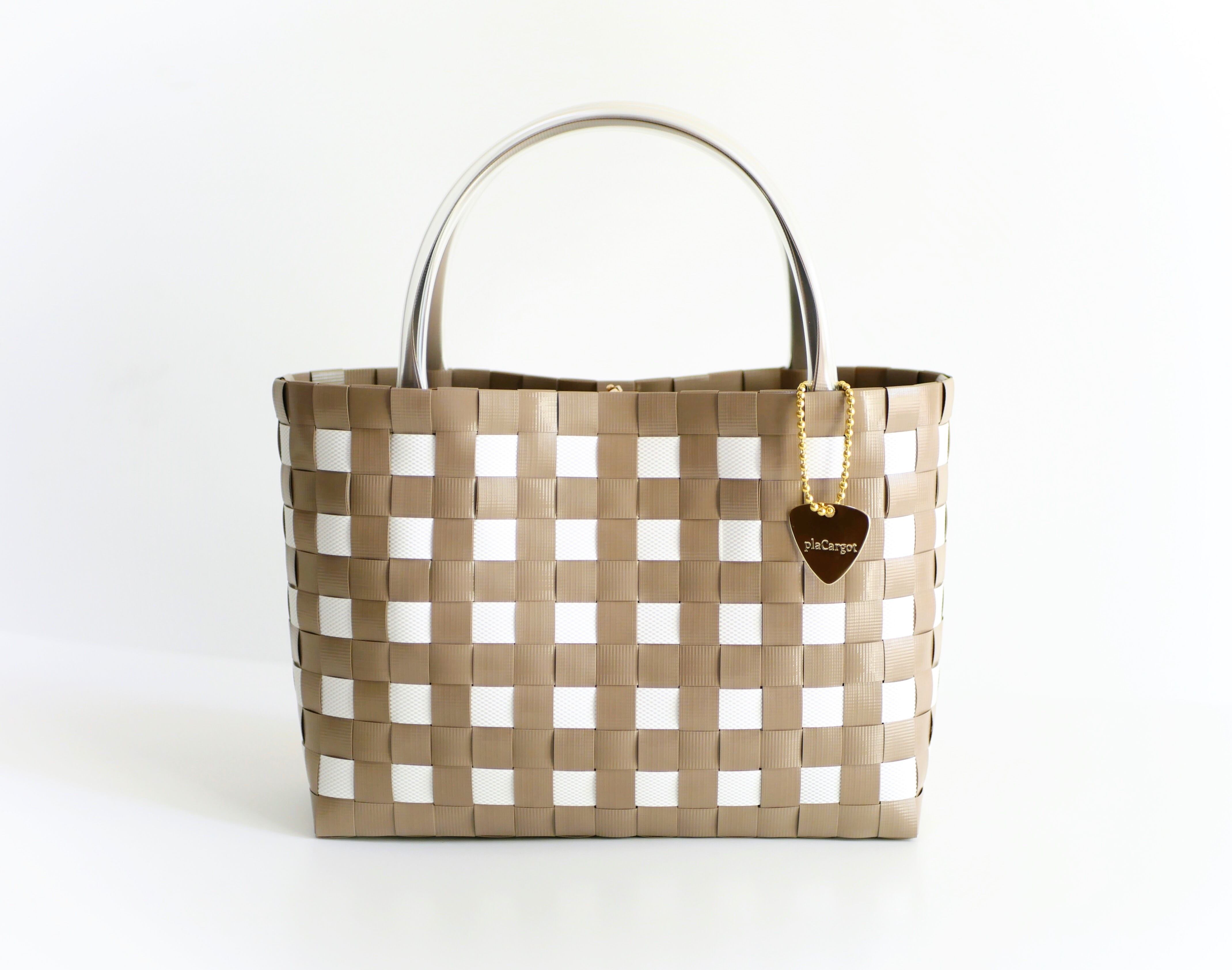 ギンガムチェック グレージュ S 2WAYプラカゴバッグ スパバッグ プラカゴ かごバッグ チェック柄 秋色