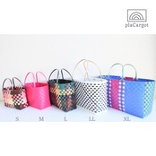 ポリプロピレンのバンドで編んだかごバッグ。水洗いOK。