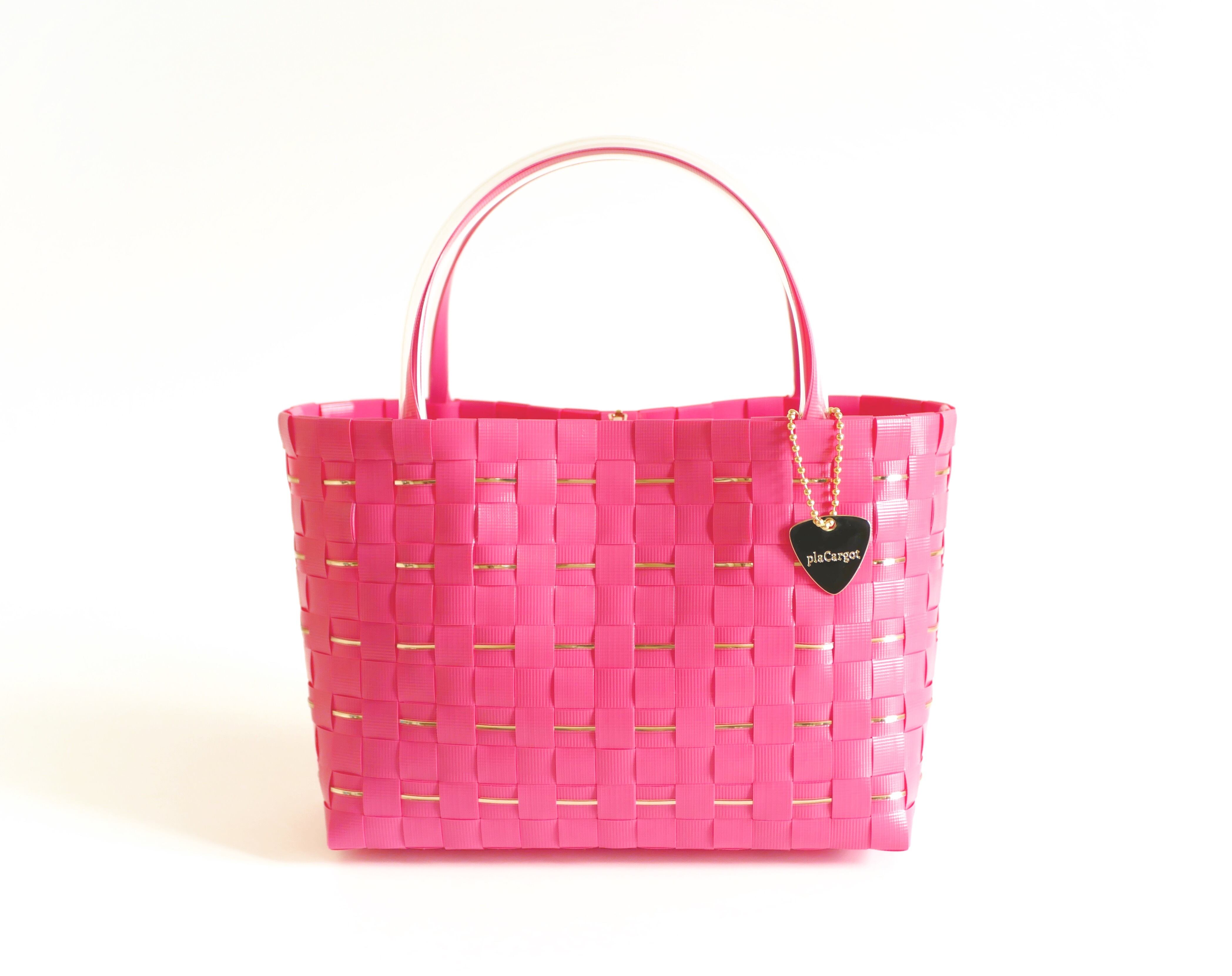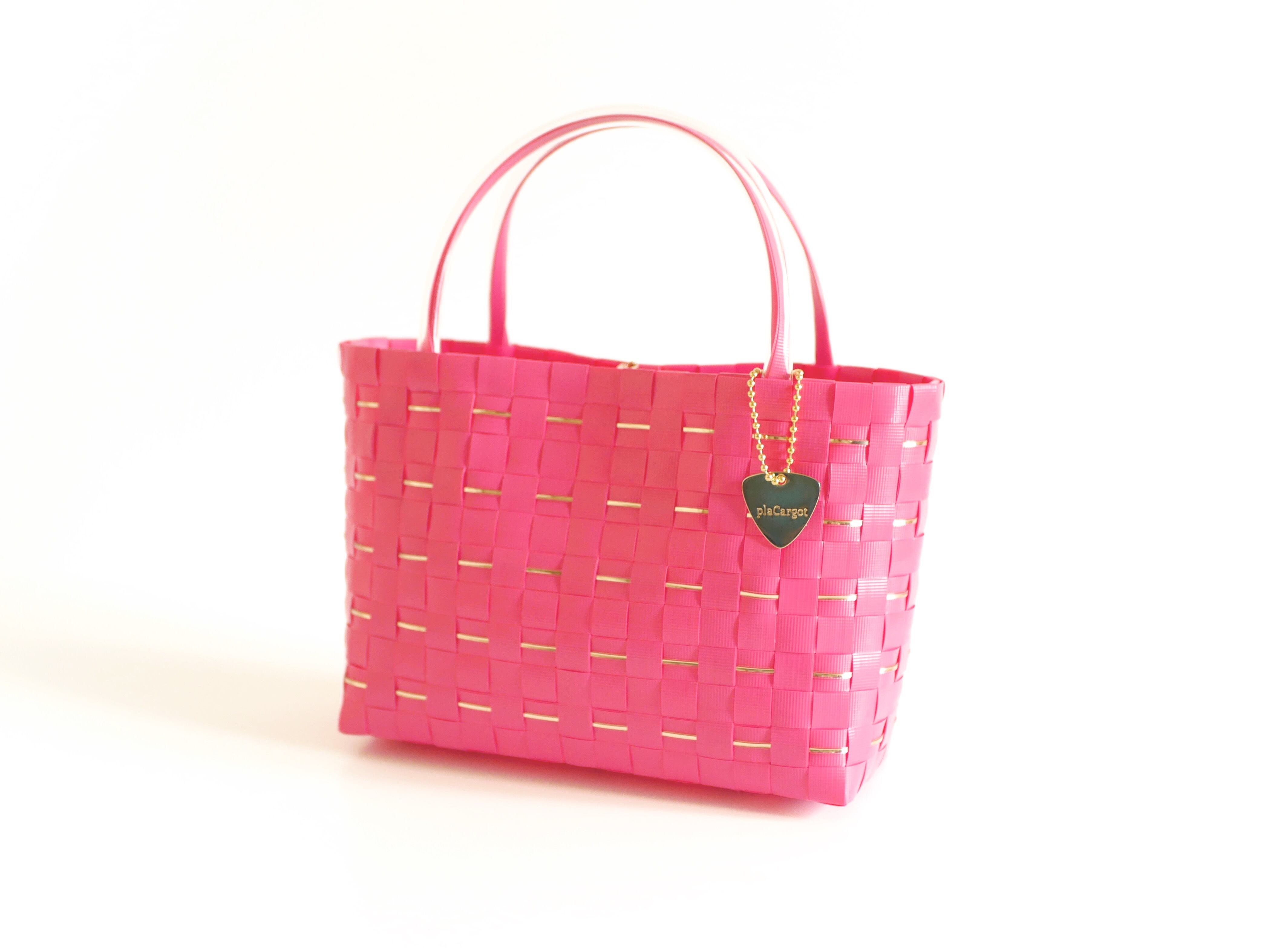 GOLD×ビビッドピンク S プラカゴ プラカゴバッグ かごバッグ キラキラ トートバッグ ハンドバッグ