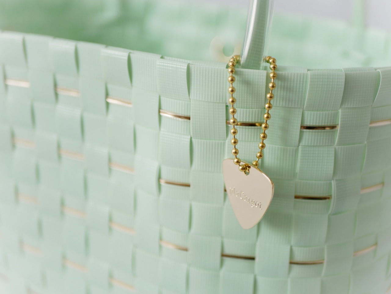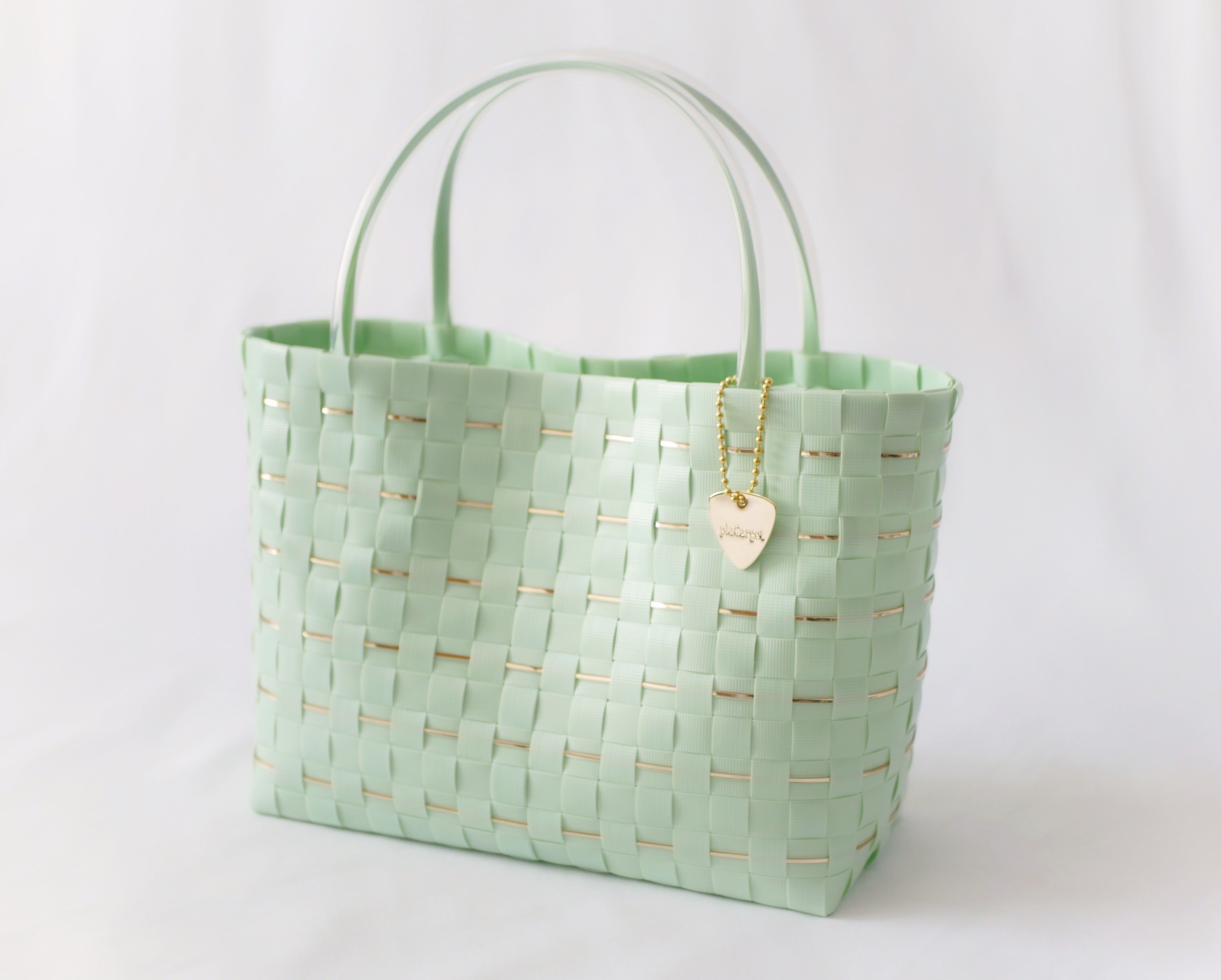 GOLD×ペールミント Mサイズ 2WAYプラカゴバッグ トートバッグ プラカゴ かごバッグ 春色 パステル グリーン