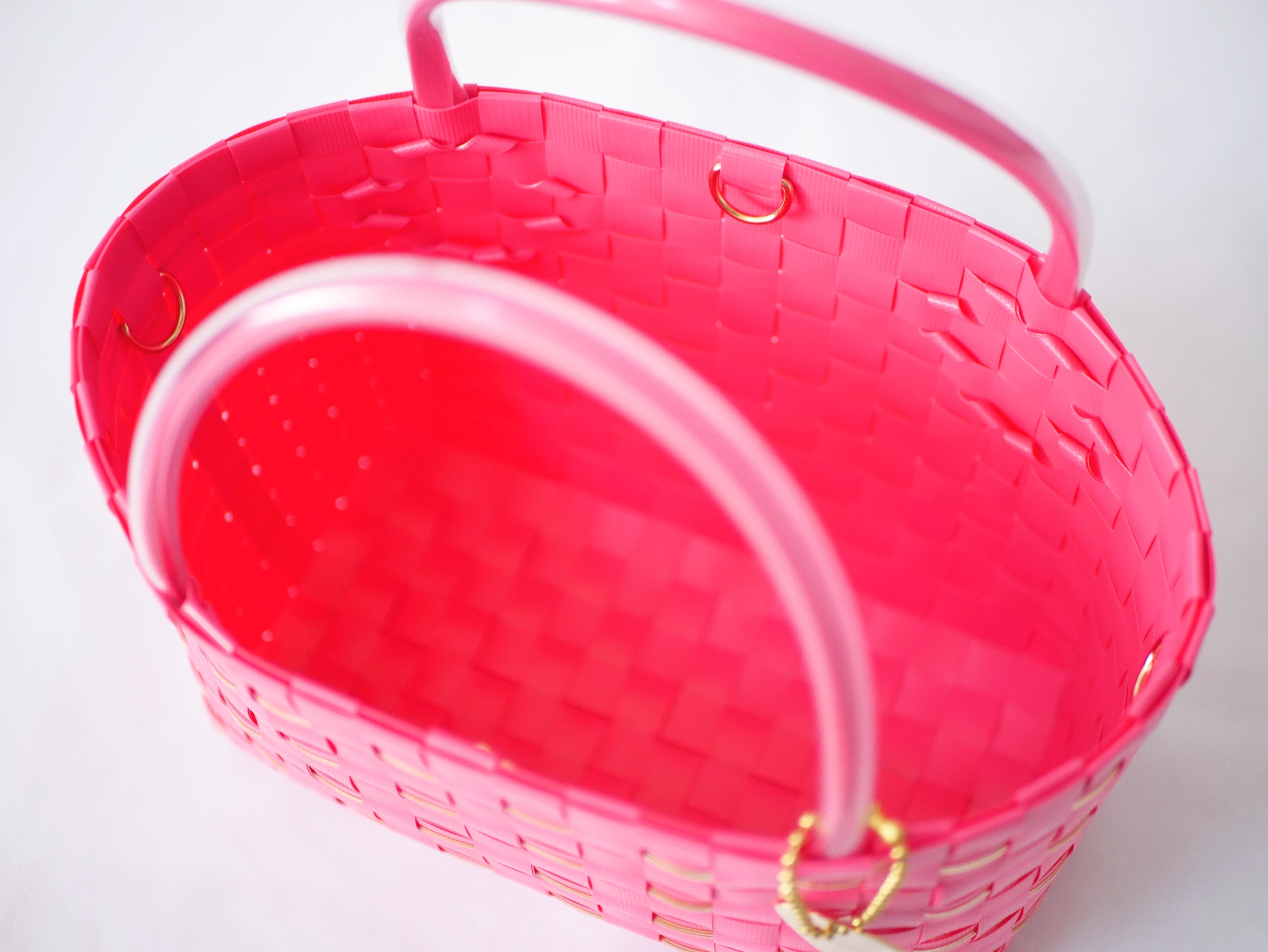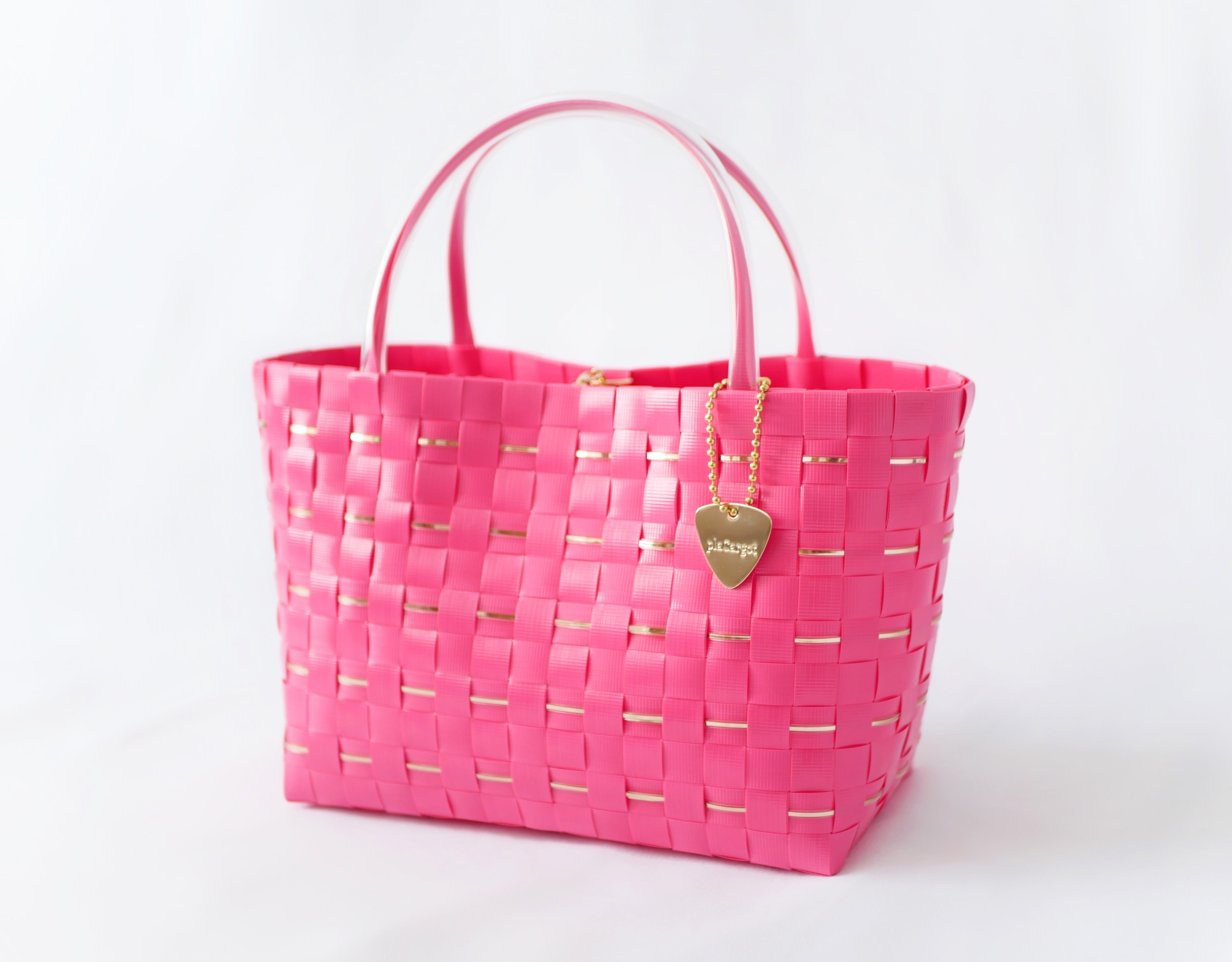 【S+サイズ】GOLD×ビビッドピンク 2WAYプラカゴバッグ プラカゴ かごバッグ ミニトート 春色