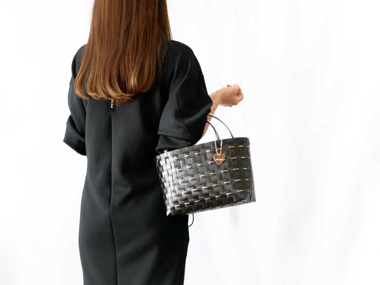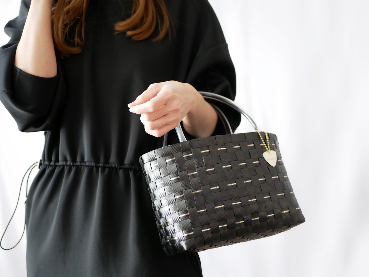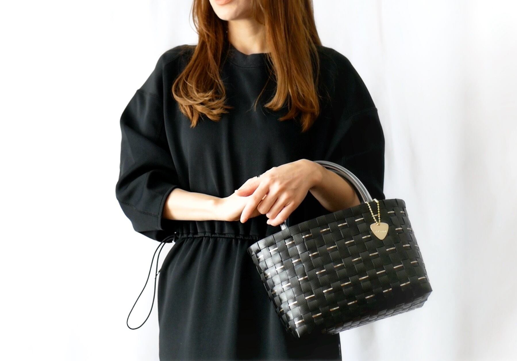 【S+サイズ】GOLD×ブラック 2WAYプラカゴバッグ プラカゴ かごバッグ ミニトート 黒 浴衣 着物