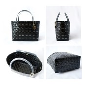 ポリプロピレンのバンドで編んだかごバッグ。水洗いOK。