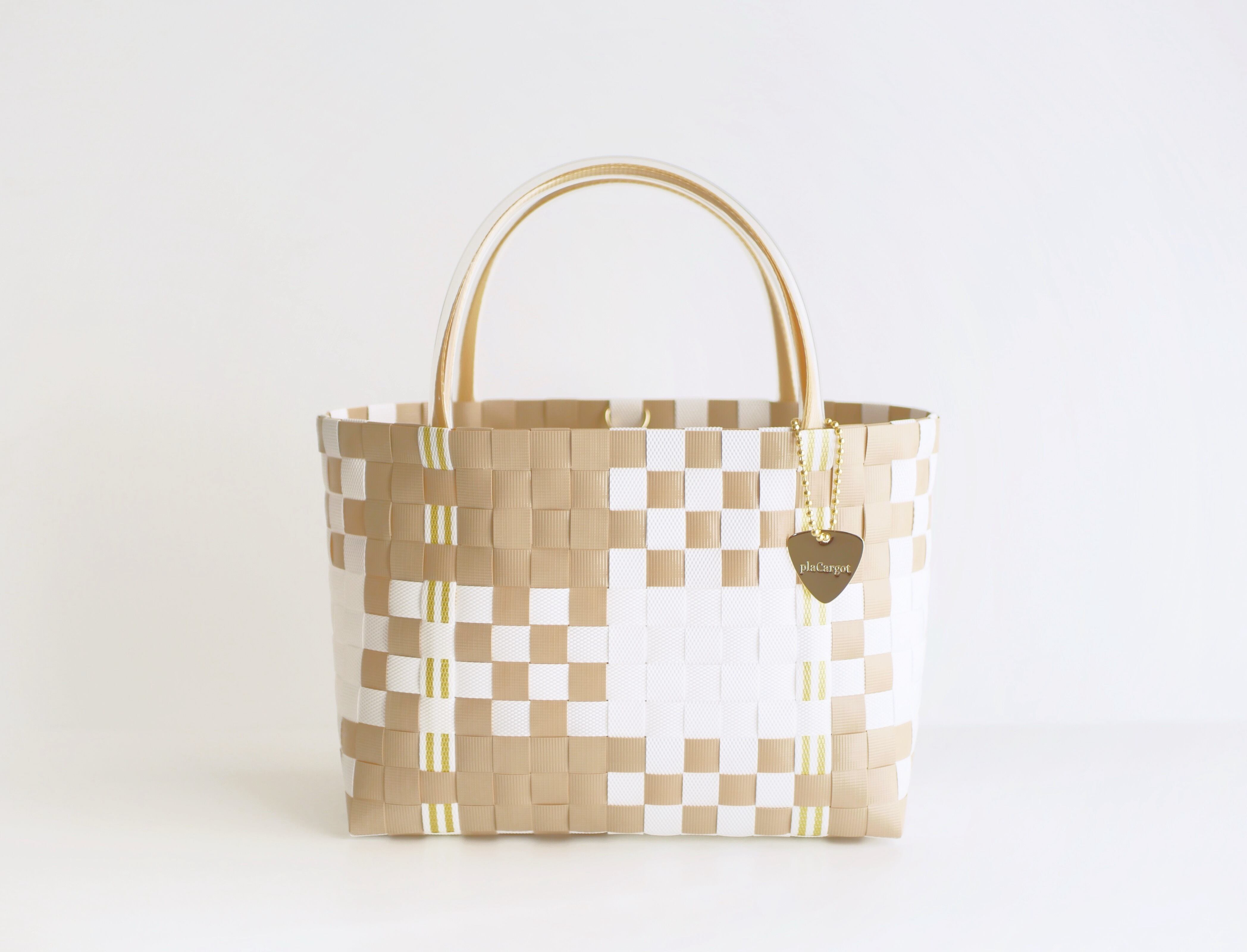 【S+サイズ】ミルクティベージュのチェック×ベージュハンドル 2WAYプラカゴバッグ