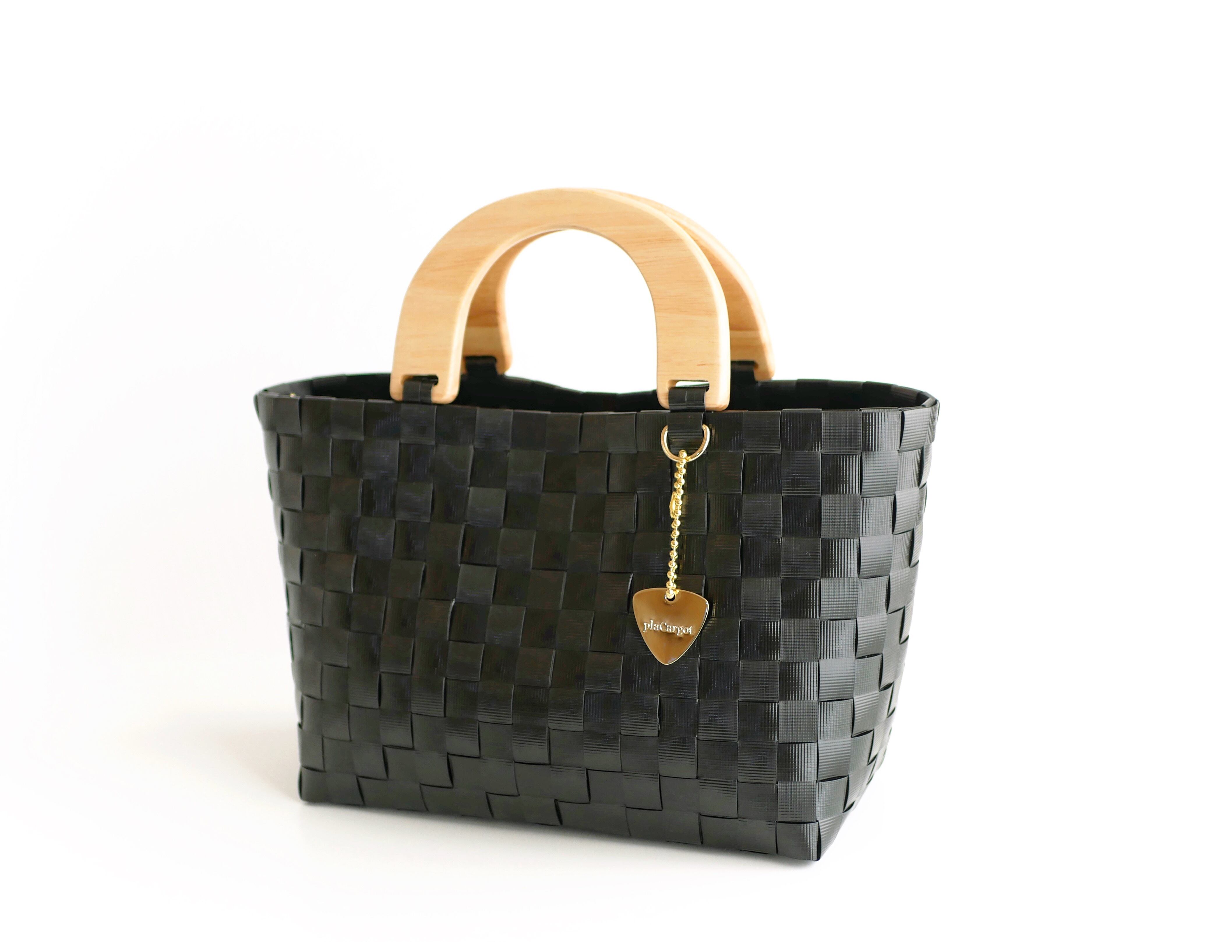 天然木ハンドルの手提げプラカゴバッグ S+サイズ ブラック 2WAYプラカゴバッグ
