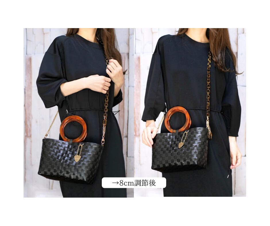 【特別セット価格】べっこう柄チェーンストラップ付きショルダープラカゴバッグ〈タイプA〉 S+サイズ 2WAY