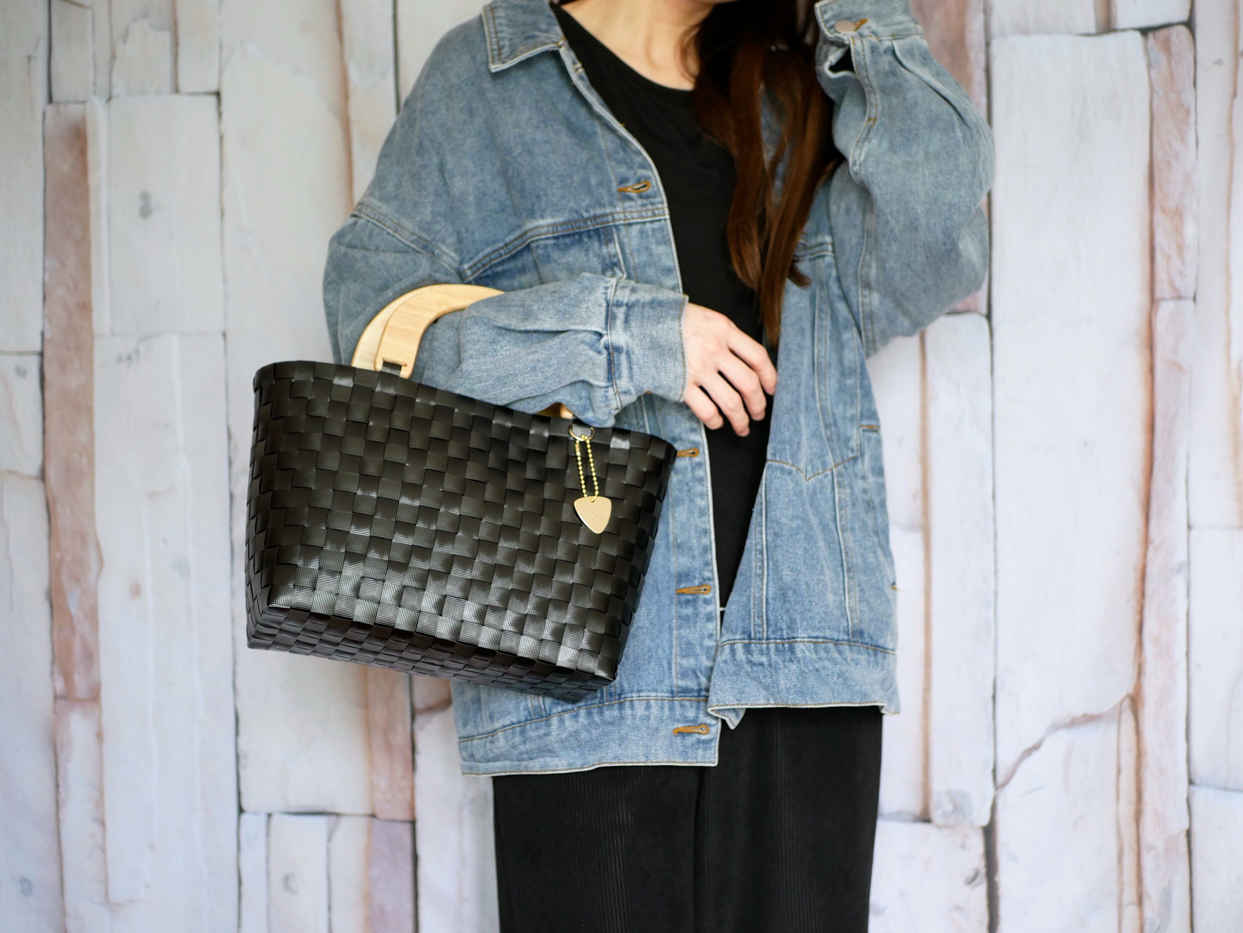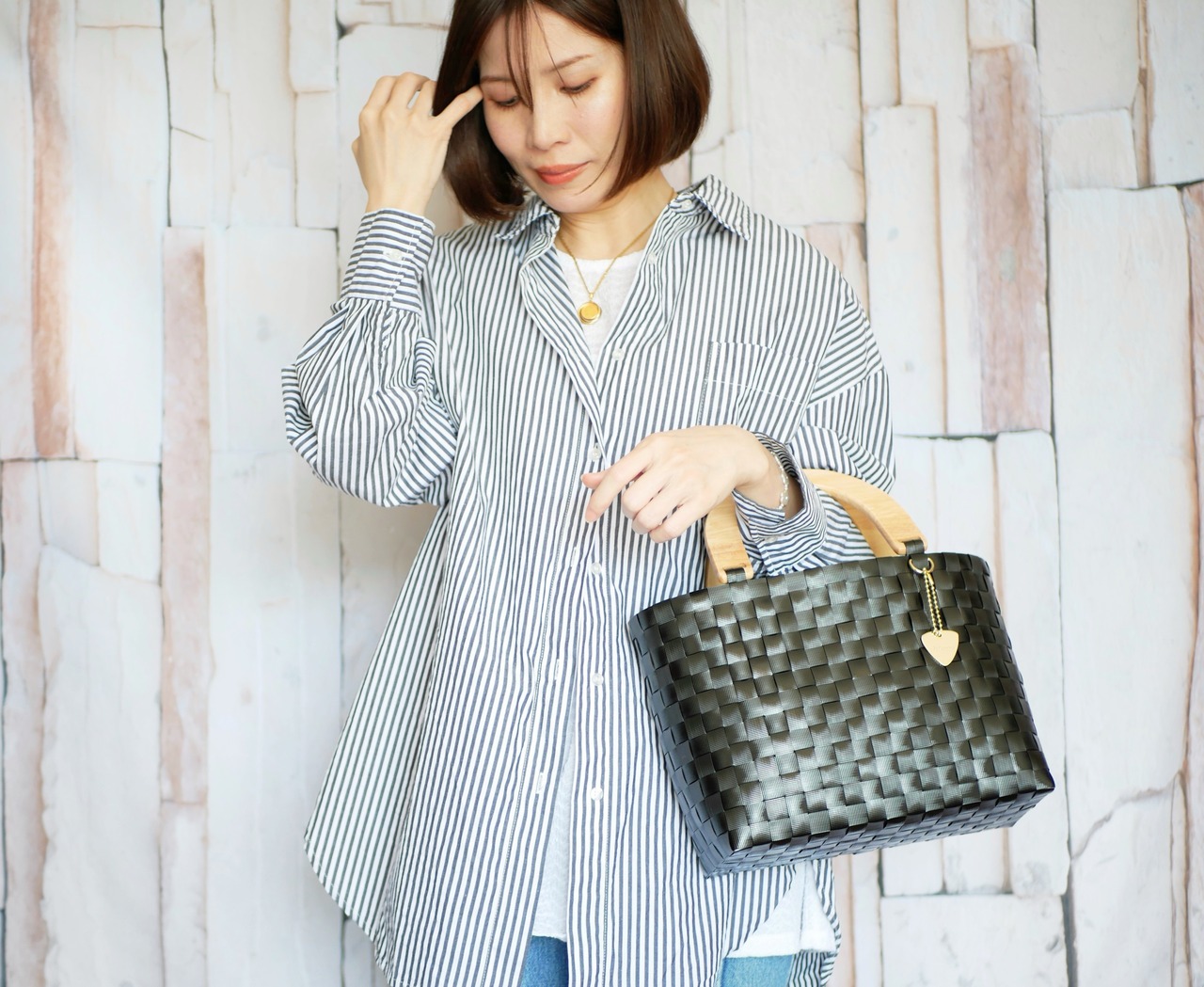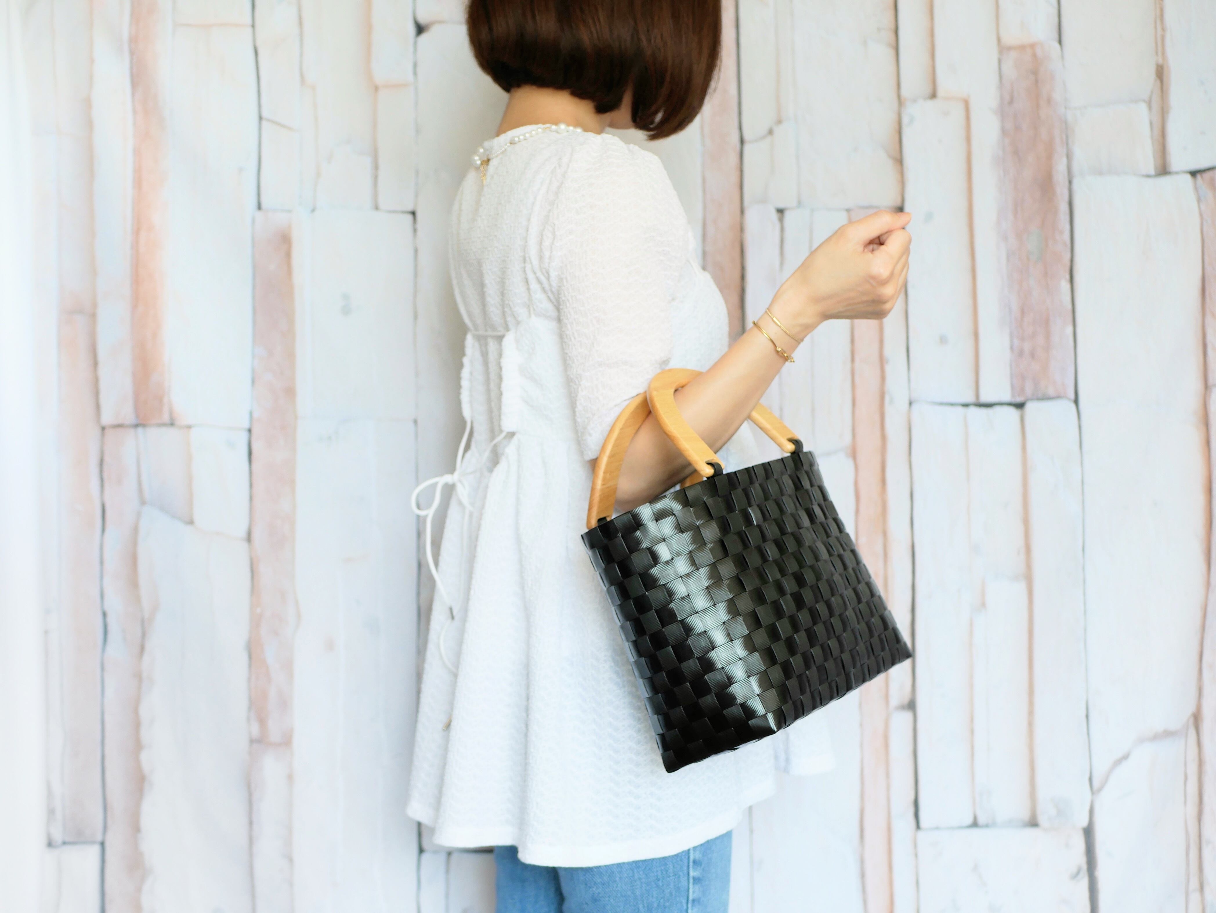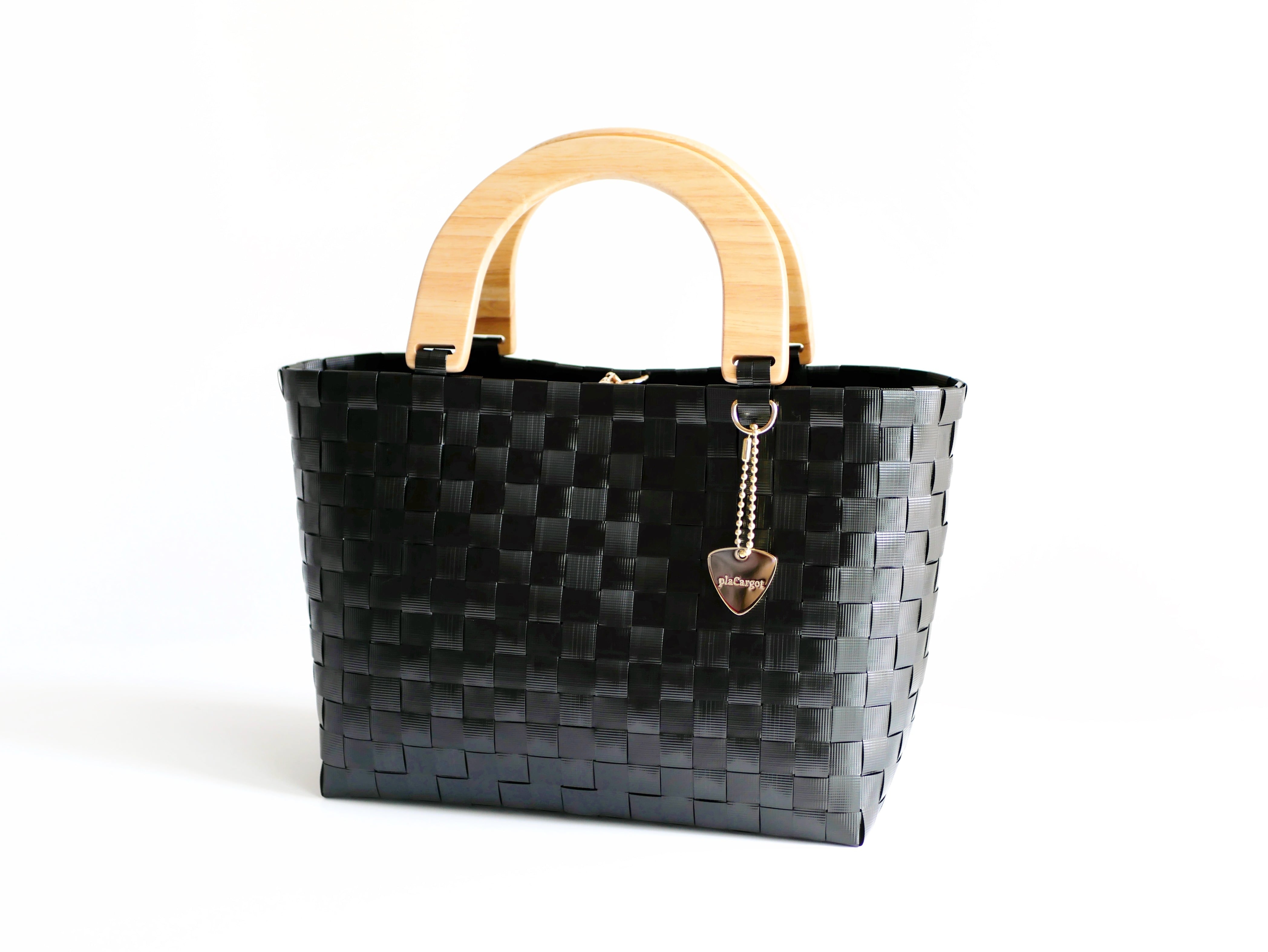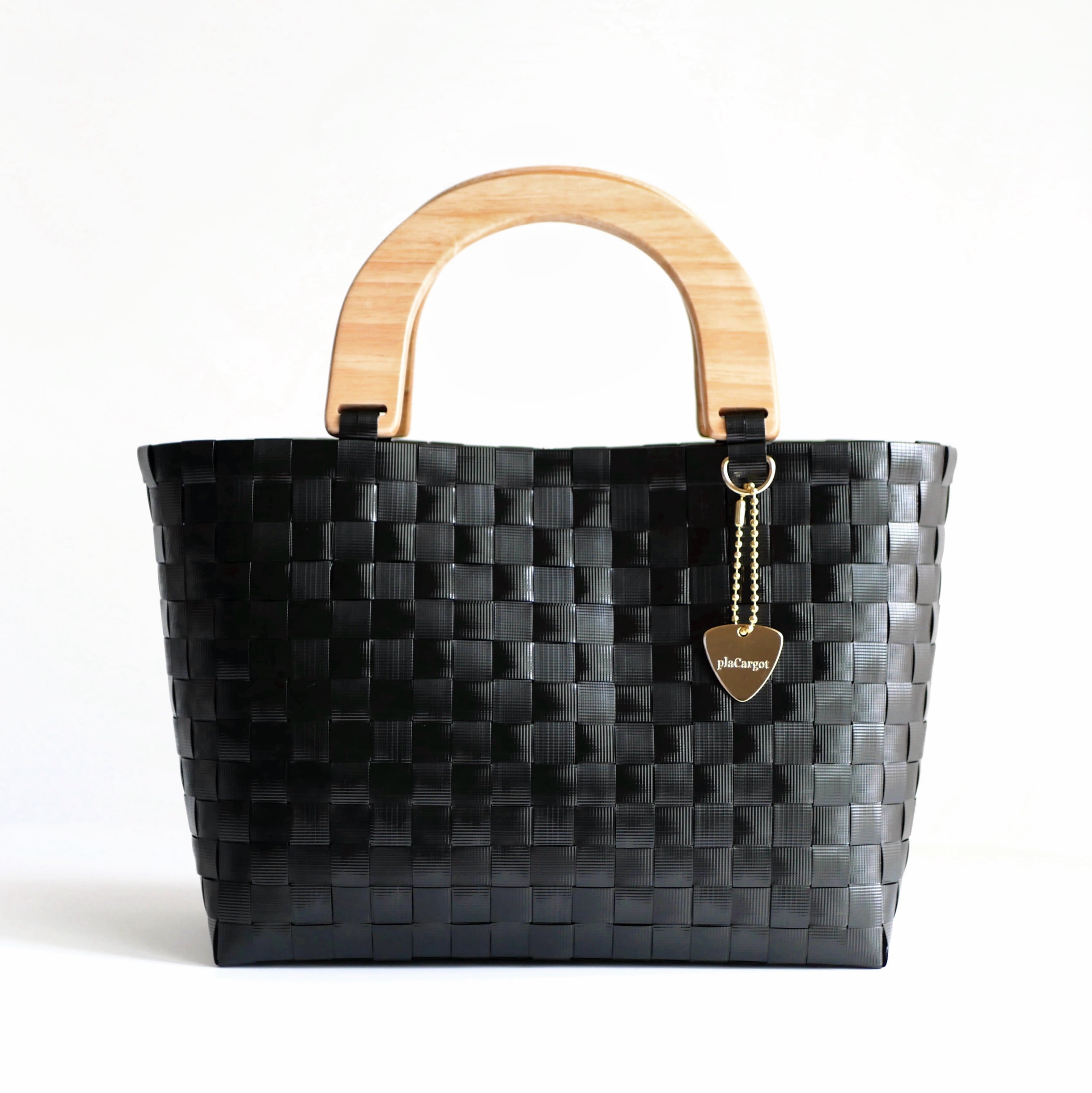 天然木ハンドルのプラカゴバッグ Mサイズ ブラック 2WAYプラカゴバッグ プラカゴ かごバッグ